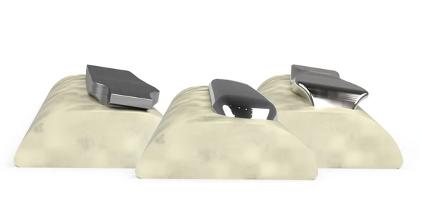 Sometimes implants need to be placed at odd angles. A'TOMIC™ implants (center) have smooth contours and blended features designed to reduce the potential for soft tissue irritation.